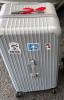 Black Samsonite roller bag carry on size. Two front zippers. Flight from Madrid to JFK number on tag is IB 661676 |