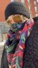 Louis Vuitton scarf black with red, green, purple and yellow patterns |
