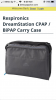 C Pap machine in carrying case weighs about 2 lbs. case made of soft plastic fabric grey color. |
