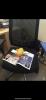 A cardboard tube with rolls of wallpaper inside - left at the jet blue ticketing area in a metal base of a stand near the check in kiosks |