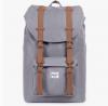 Gray Herschel Backpack with brown straps. Contains LEGO set, PS4 and two controllers and a Wilson gst football. |