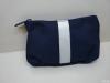 A China Southern Airline cosmetic bags/travel wash bag that has multiple tester size skincare products from brands like Nescens, Valmont, Vishya, etc in it as well as one cotton pad, one already opened/used white drug envelope that has several red/pink capsules in it. |