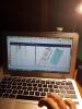 A metalic silver Macbook with 11 inches screen, having some small scratches all over the screen and body. No cáe. It is currently in sleep mode unless no one touch it, and by the time turning on, it can be view running Window software along with the pop up name Khiem Bui in the password locked screen. |