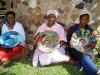 Blue and White Bowl with a geometric pattern made from plastic covered wire (reclaimed telephone wire made by crafters in Africa) It is shallow but approximately the size of a large dinner plate in diameter.