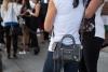 It is a small black leather bag : 2 Black handles, 1 shoulder strap .... bronze thick zippers ....