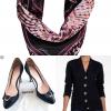- one black Tory Burch Simone cardigan with v neckline and large silver logo buttons
