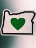 Macbook Pro, GREY, with a Oregon sticker on it, the sticker has a GREEN heart on it. |