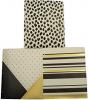 The folder is an 8 x 10, plastic beige pocket folder with gold and black horizontal stripes. Here is a link of a photo of the folder (the folder on the bottom right corner):