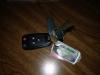A key fob for a Chevrolet Cruze along with four house keys some vendor barcode tags and an electronic gate keyfob. |