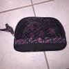 small bag with all cosmetics. Probably Lancôme or Victoria Secret brand. Most items from Lancôme and some from Mac. Probably Fitbit inside too |