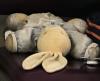 Hello, our boy lost his rabbit cuddly to customs office. It is light blue (quite worn) and embroidered Kaloo under the left foot. On the belly of the rabbit there is a little mouse. The rabbit was also sewn on the feet. |