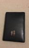Dark navy blue passport case with name D**** L**** on immunisation history inside cover and yellow fever vaccination book. Left at airport before flight to London. Arrived at airport 5am and flew out at 8am so lost in between these times. |