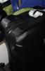 Large black bag with ‘IT’ written on the front of it. The top part of the bag is solid green where the handle is and the bottom section is also solid green where the wheels are as seen in image attached. One of the four wheels at the bottom is broken and doesn’t move properly.