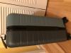 iPhone with dark case. Almost like cloth. Picture of two little girls on the beach on the home screen. |