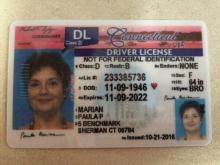 CT Driver License #233385736 DOB: 11-09-46 Expires 11-09-2022 Paula P Marian 5 Benchmark Sherman, CT 06784