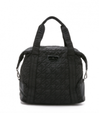 Black 'Stella McCartney for Adidas' nylon duffel bag. British passport inside, shoes, scarves, toiletries.