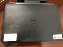 Black Dell Lap top with white CSC Sticker in bottom right corner