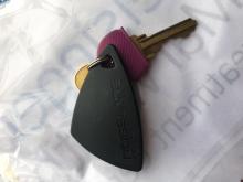 Hi, lost One set of several keys (from home and from work), distinguishable by "2" FAB keys - 1 gray color and round in shape (smaller), and 1 black color asymmetrical triangular shape (larger), imprinted on it "ROSSLARE Security Products" ; and attached to the black FAB key, is a regular key with a purple color rubber cover (rounded off at top). Image chowing partial keys (not shows the gray FAB and other keys).