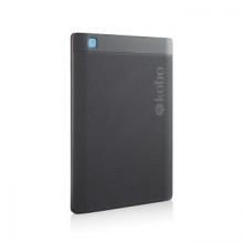 Reader Kobo by FNAC (French), black with blue power button on the back, probably left on the plane :