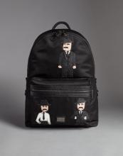 A black Dolce&Gabbana backpack. It has a passport and a student I-20 form in it. It has a colorful jacket and a underwear pants in it. Backpack is medium size.