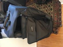 Small greenish brown suite case with tag that says Peter Goldstein Clearcasr Tech