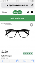 Black Kylie Minogue glasses with black diamanté’ type arms. Were inside a tweed cloth case, which is pale blue/ light turquoise in colour.