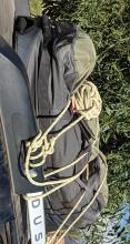 3 external pockets/large canvas material GREEN wheeled LUGGUGE. The handle is broken and will not extend. has an OWL sticker on the back