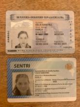 My VISA and SENTRI card under the name "Karla Celis Sánchez".