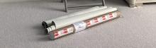 A cardboard tube with rolls of wallpaper inside - left at the jet blue ticketing area in a metal base of a stand near the check in kiosks