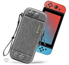 Nintendo Switch console, red and blue controllers, in a grey case (picture attached).