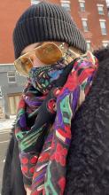 Louis Vuitton scarf black with red, green, purple and yellow patterns