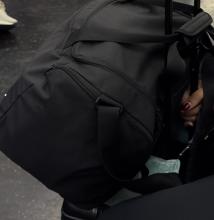Black bag with white Puma brand on one side. Contains candy, caps, child’s blanket and a grey plush elephant toy. The bag was lost between 2:30-4:30pm. Probably We left on flight LK411 to Munich.