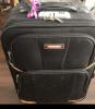 Black prestige brand suitcase with wheels on it.... |