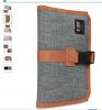 Gray canvas bag with orange trim and black clip. Contained charging cords for various electronics, a fire stick, apple air pods (purple case), and Bang&Olfusen wireless headphones. |