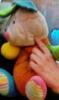 Stuffed animal left at baggage claim #3. Bunny rabbit, multi color with white, orange and green. May have ears missing/torn. Child's sleeping buddy, very special to her. |
