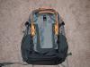 grey and orange patagonia backpack. inside is a laptop, charger, and schoolwork (textbooks, etc...) |