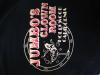 Black hooded sweatshirt with a "Jumbo's Clown Room Hollywood California" graphic on back. There is also a smaller graphic on the front left of the chest area. |