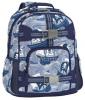 Pottery Barn Kids back pack, blue with pirates design. Inside toddler diapers, t-shirts, pants.
