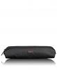 Black, canvas, electronics cord pouch. Approximately 10 to 12 inches in length and about five or 6 inches around. Contains several charging cables, plugs, a travel adapter, assorted coins, and a few pieces of sentimental jewelry. Was in plastic security bin. |