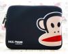 A Macbook Air 13" laptop computer (silver) in a black fabric bag (Paul Frank Monkey image) |