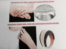 Ring 1: Swarovski Pebble in rose gold with black crystals on sides