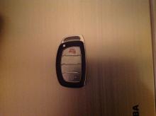 Brown FOB for Hyundai Sonata had one square copper colored key attached. Possible left in bin at security checkpoint