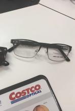 They are men's glasses that have a black frame. The lenses have the black frame at the top and metal at the bottom. The brand is Alexander Julian.