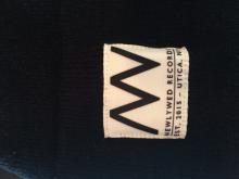 Black winter hat. Has a "NW" symbol. Reads: Newlywed Records, Utica NY