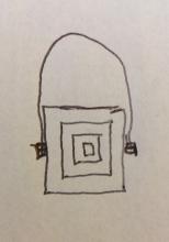 Silver ring with a flat square top. The big square is actually made up of four or five smaller concentric square frames nestled within. The big square and all the smaller square frames rotate around the center so you can change the side that shows. On one side, the silver is smooth. On the other side, the silver is scored with lines.