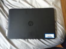 HP Laptop, name tag on the laptop reads Goutham Mangala. Black color laptop.