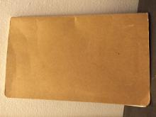Light brown large notebook with geometry sketches and various notes in English and German. It was left on board a Swiss airlines flight LX16 Zürich-JFK. The attached image is the same material, but a size smaller.