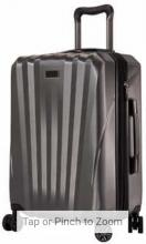 Gray hard case Ricardo Check size luggage. Has zipper lock on top with 3 number combination. Gas baby stuff inside, make up and clothes.