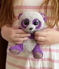 small white and purple panda Beanie Boo stuffed animal (it's well-loved so it's more like gray and purple)