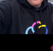 Black Hoodie with a rainbow colored cloud, and the words "CLOUD CANNABIS" on the sleeve in blue